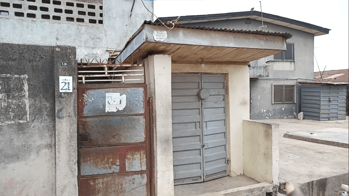 For sale: A 1-story duplex located in Isolo, Lagos, Nigeria. This property features 15 bedrooms, 4 bathrooms, 2 kitchen areas, and an attached commercial shop facing a well-maintained street with good drainage in a busy commercial area of Isolo.